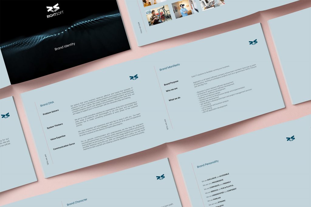 We delivered a full suite of branded assets — business cards, letterhead, presentation templates, social media banners and sample posts — and consolidated everything into a detailed Brand Guidelines document covering logo usage, colour application, typography, imagery and tone of voice, giving RightSoft a structured and consistent brand system for long-term growth.